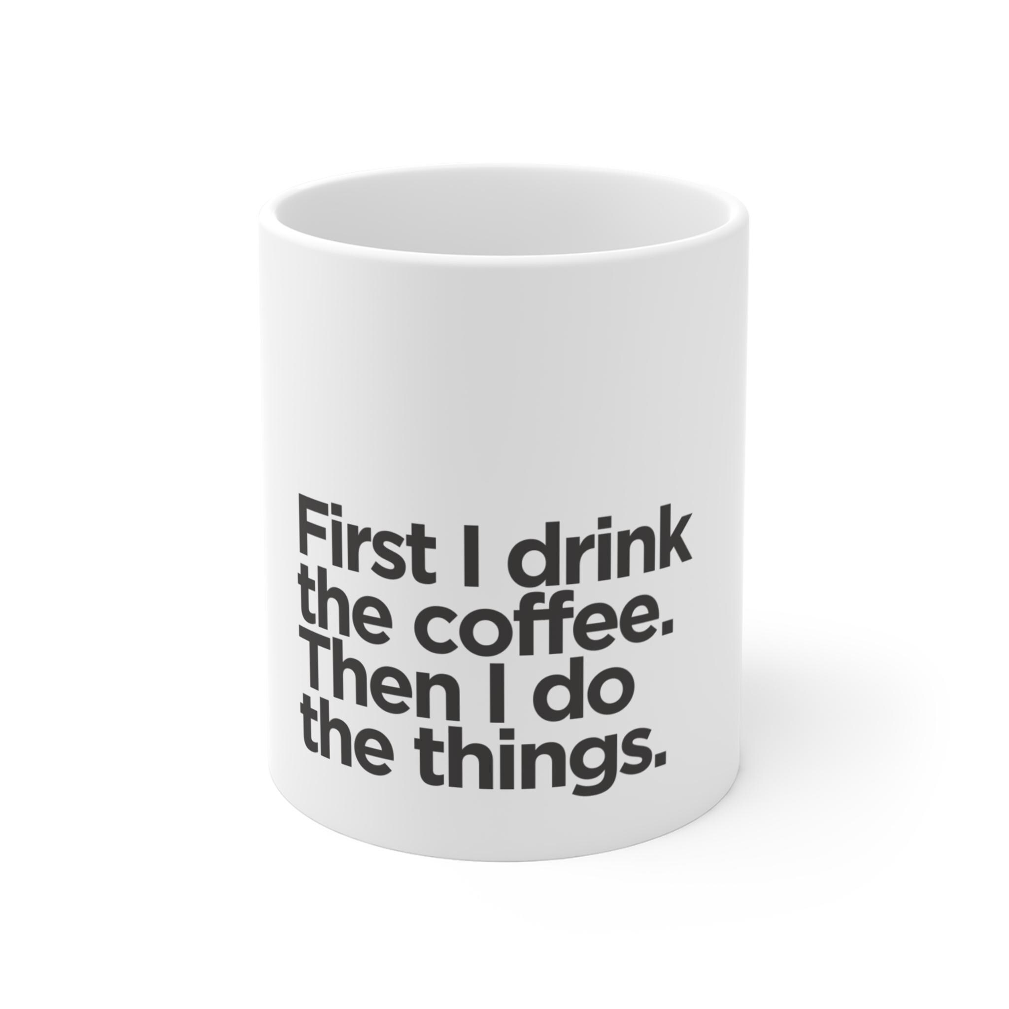 This charming 11oz Mug is perfect for those who believe that a good day starts with a great cup of coffee. Its sleek white ceramic design features a playful quote that brings a smile with every sip. Ideal for busy mornings or cozy evenings, this mug will elevate your coffee or tea experience. Perfect for coffee lovers, professionals, or anyone in need of a little motivation! This mug makes a delightful gift for birthdays, holidays, or as a thoughtful thank-you. Its versatile design fits seamlessly into any kitchen or office, making every coffee break feel special.
