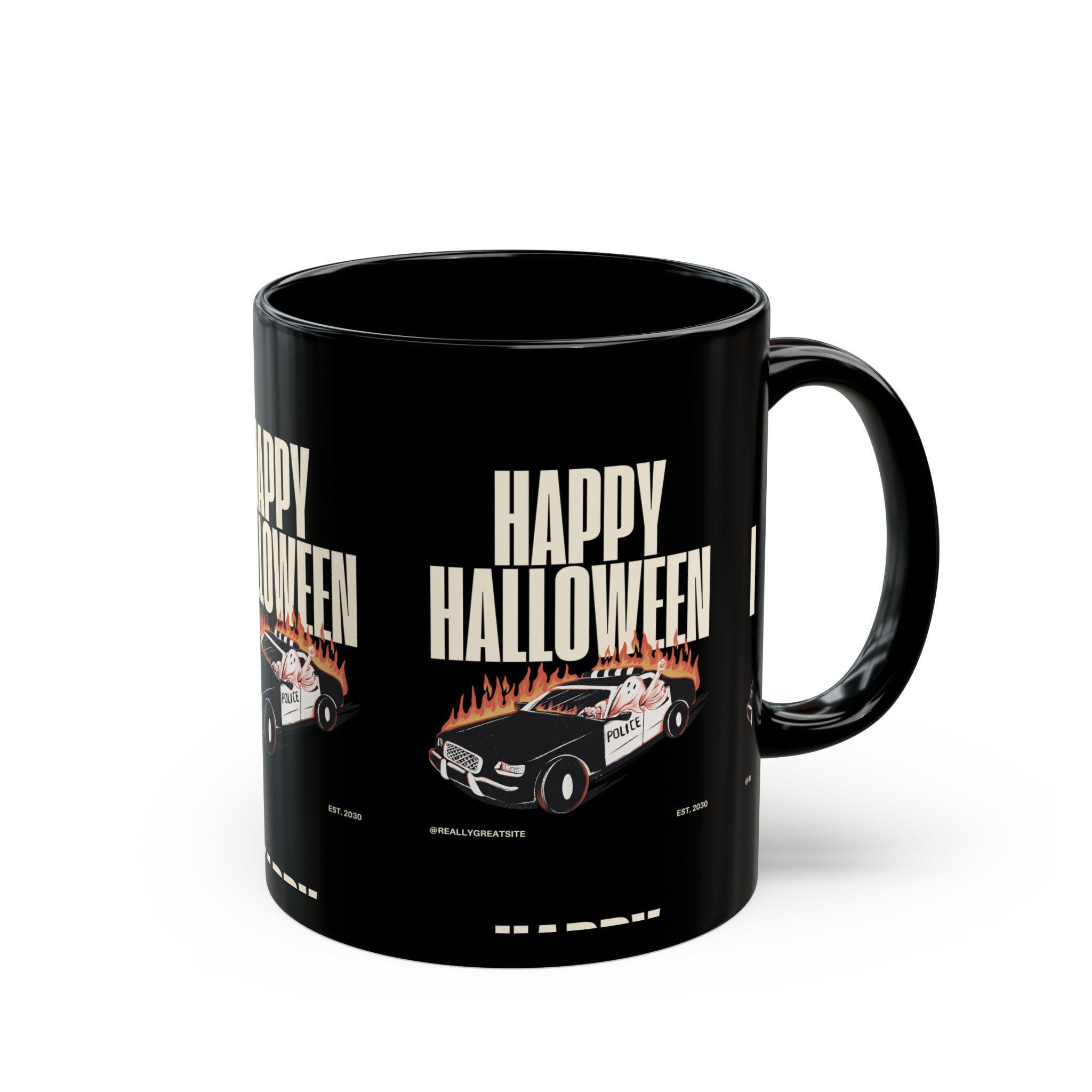 Halloween Themed Black Mug - Perfect for Coffee, Tea, Gift for Halloween Enthusiasts, Spooky Party Decor, Collector's Item