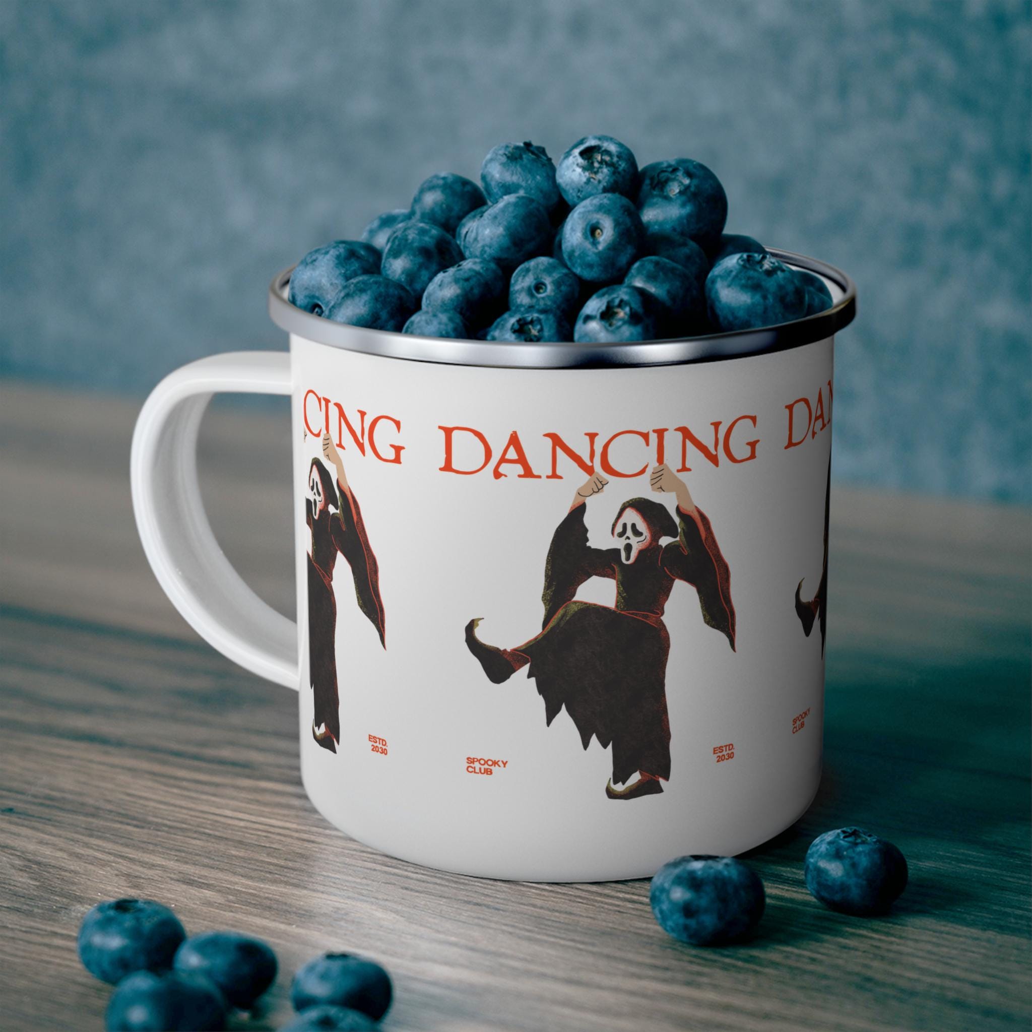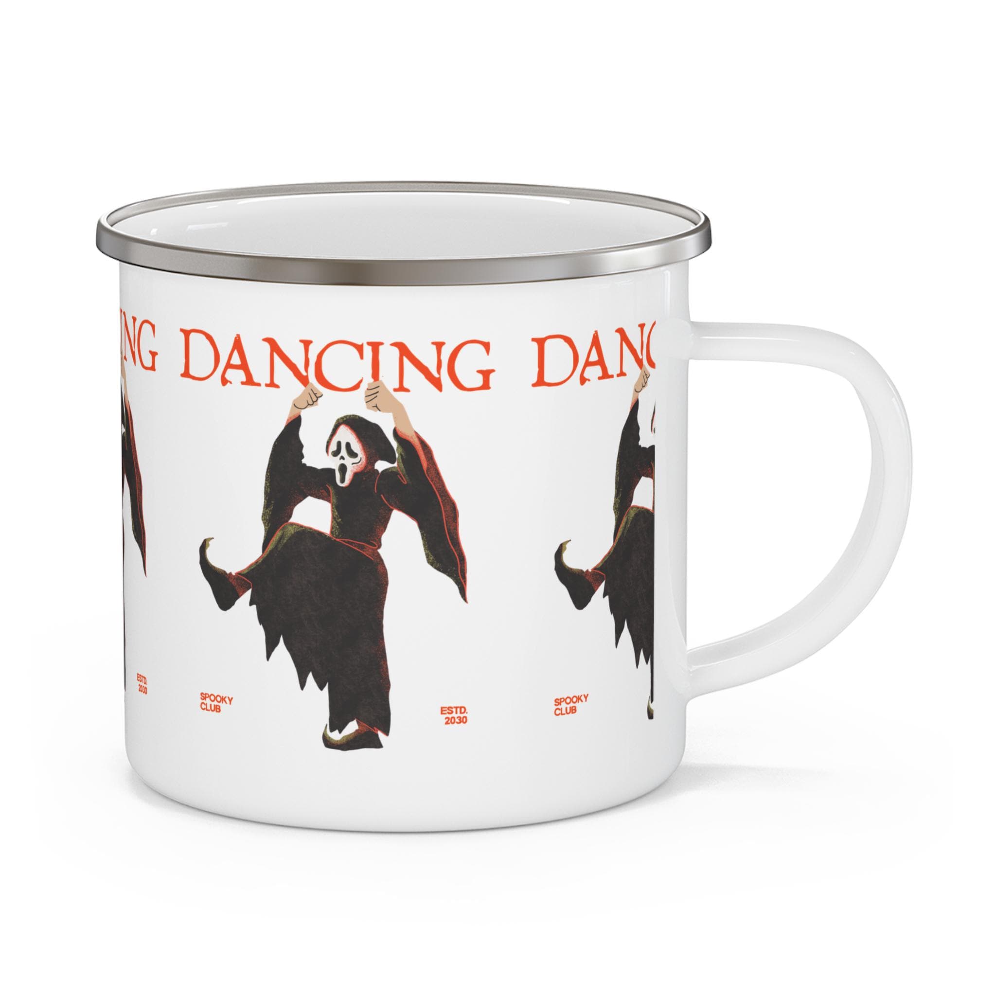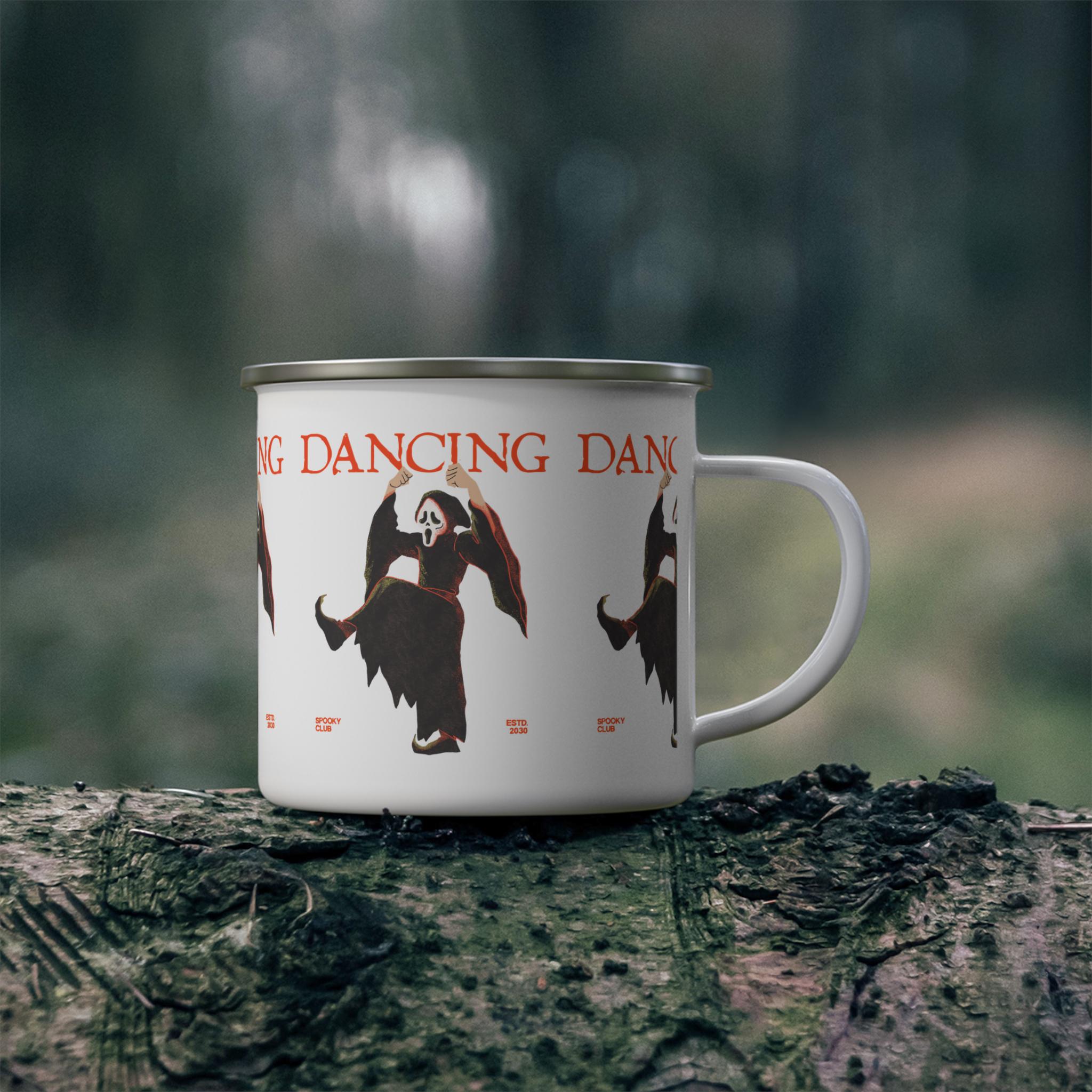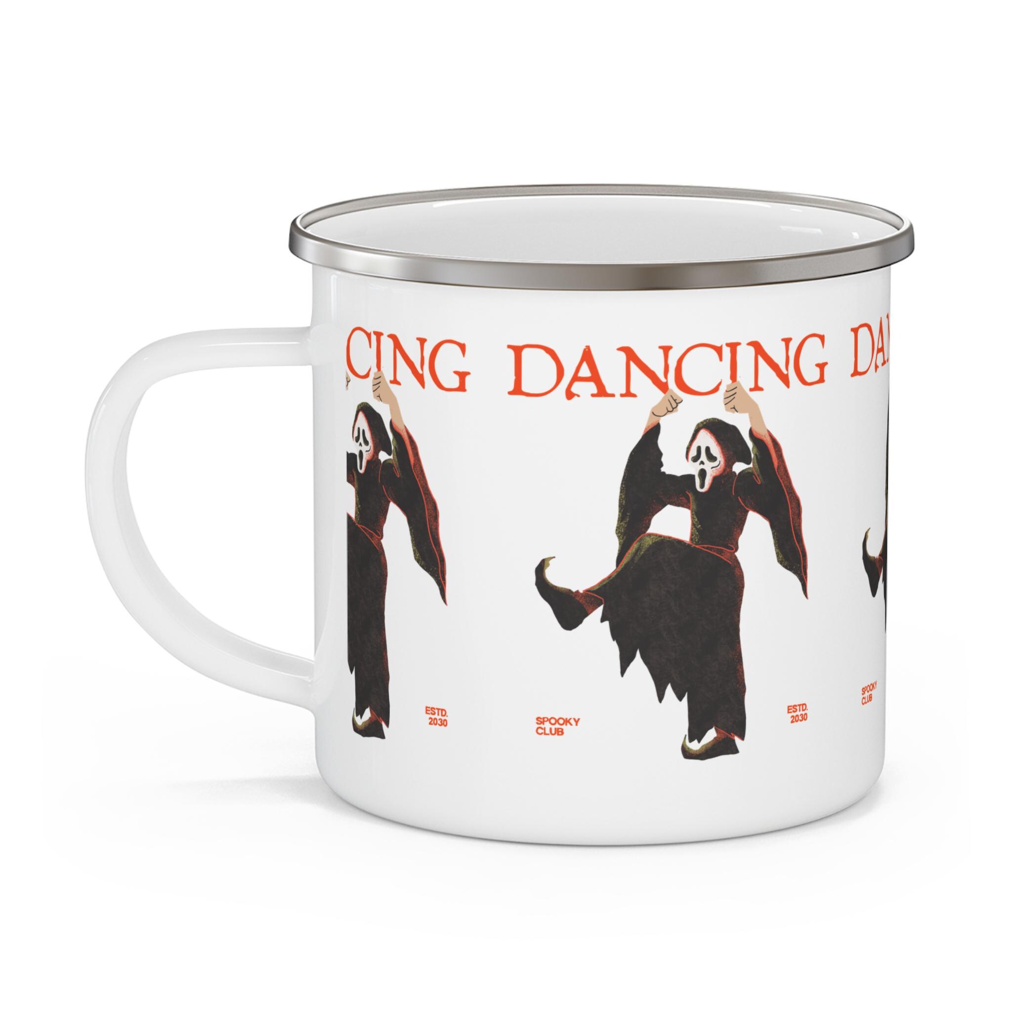 Dancing Ghost Enamel Camping Mug | Unique Scary Gift, Halloween Decor, Outdoor Adventure Mug, Funny Camping Cup, Spooky Collectible