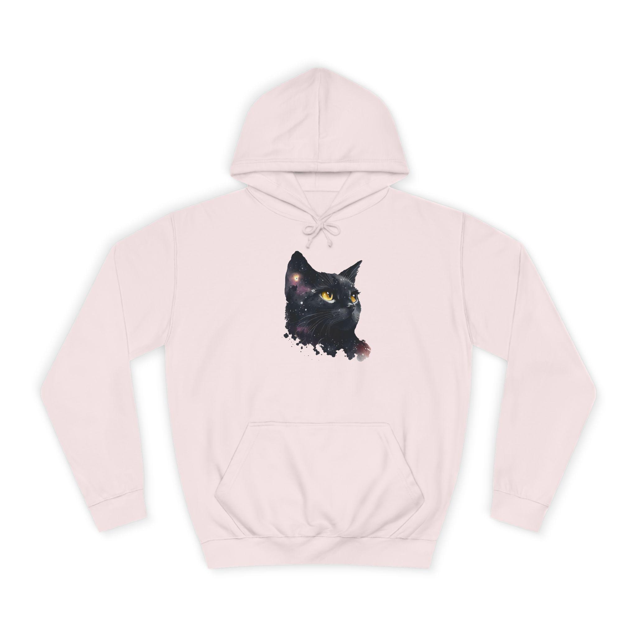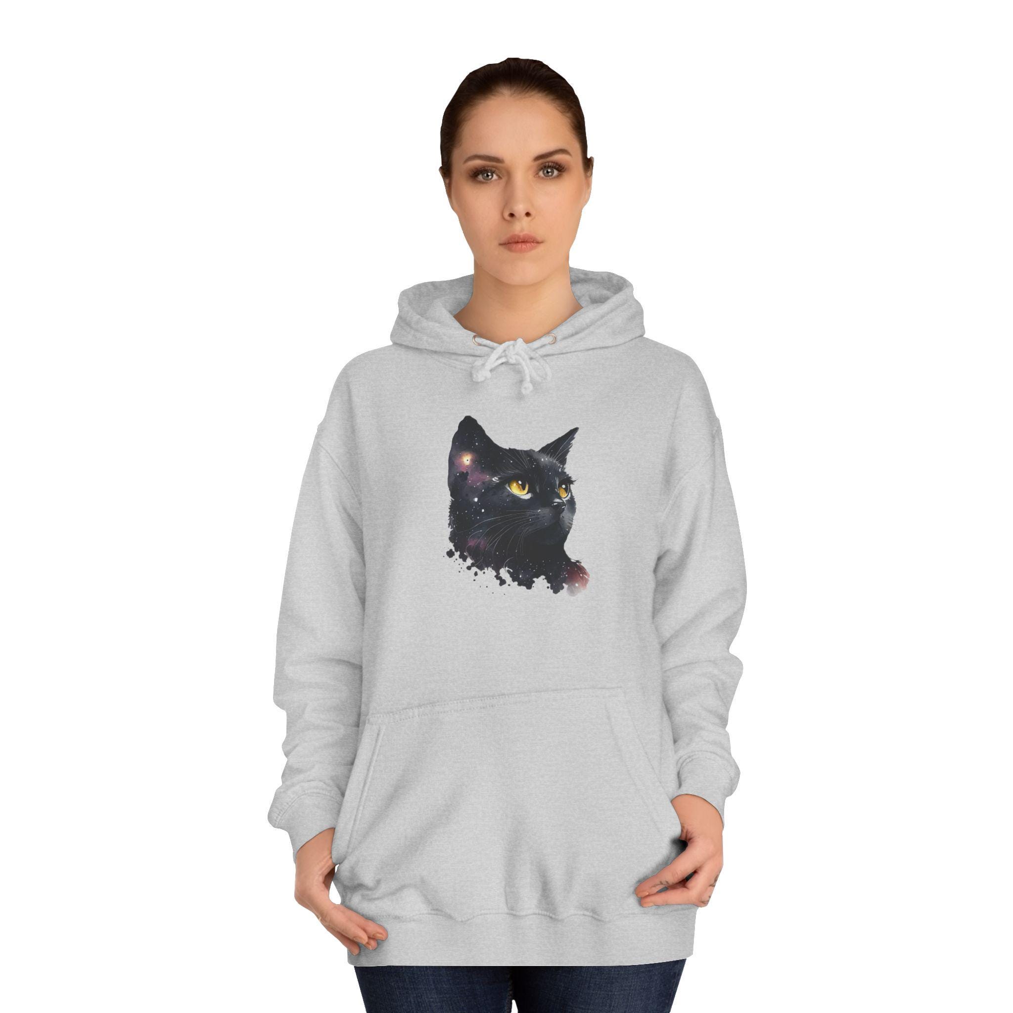 Cosmic Cat Hoodie, Women Space-Themed Sweatshirt, Gift for Cat Lovers, Cozy College Apparel, Unique Galaxy Cat Design