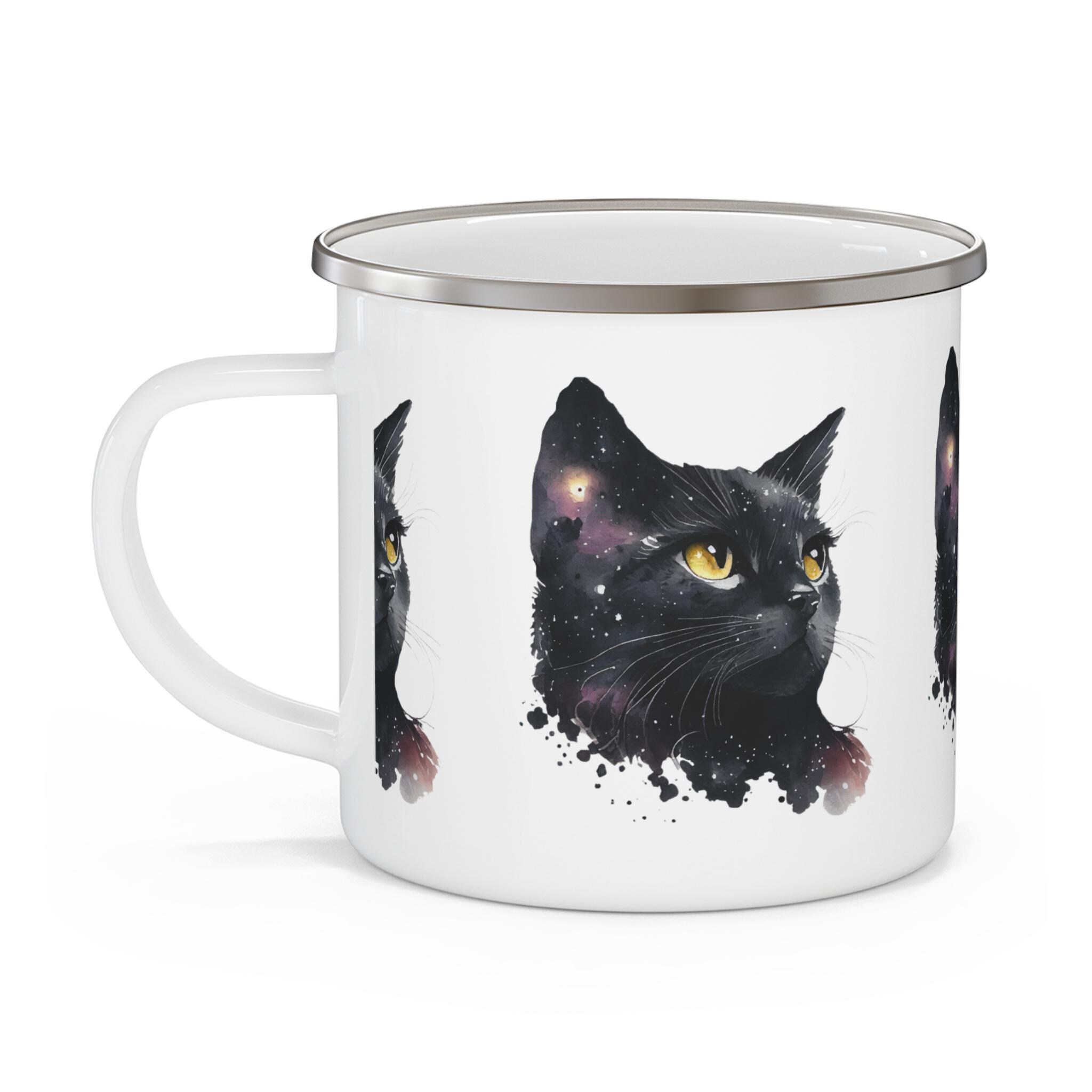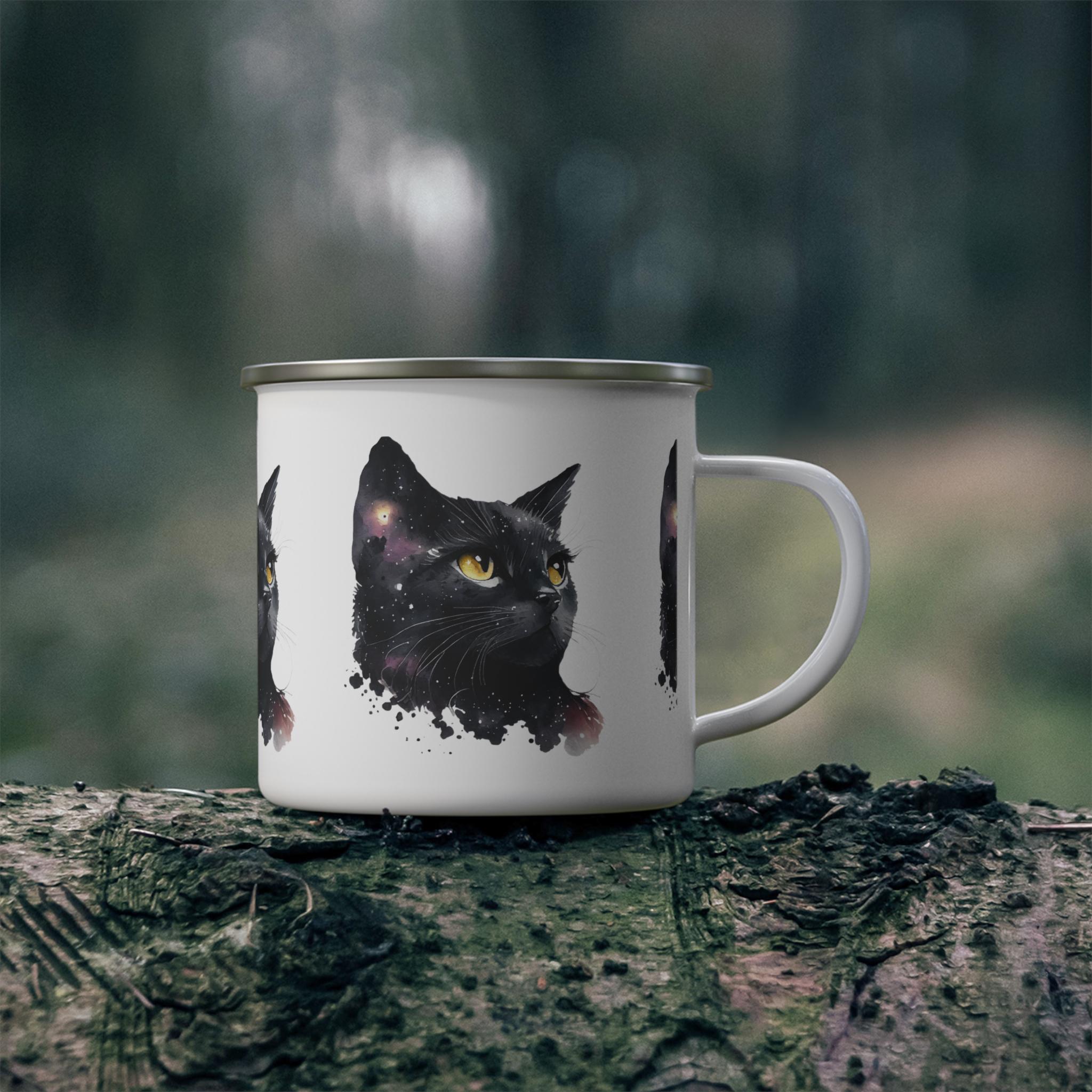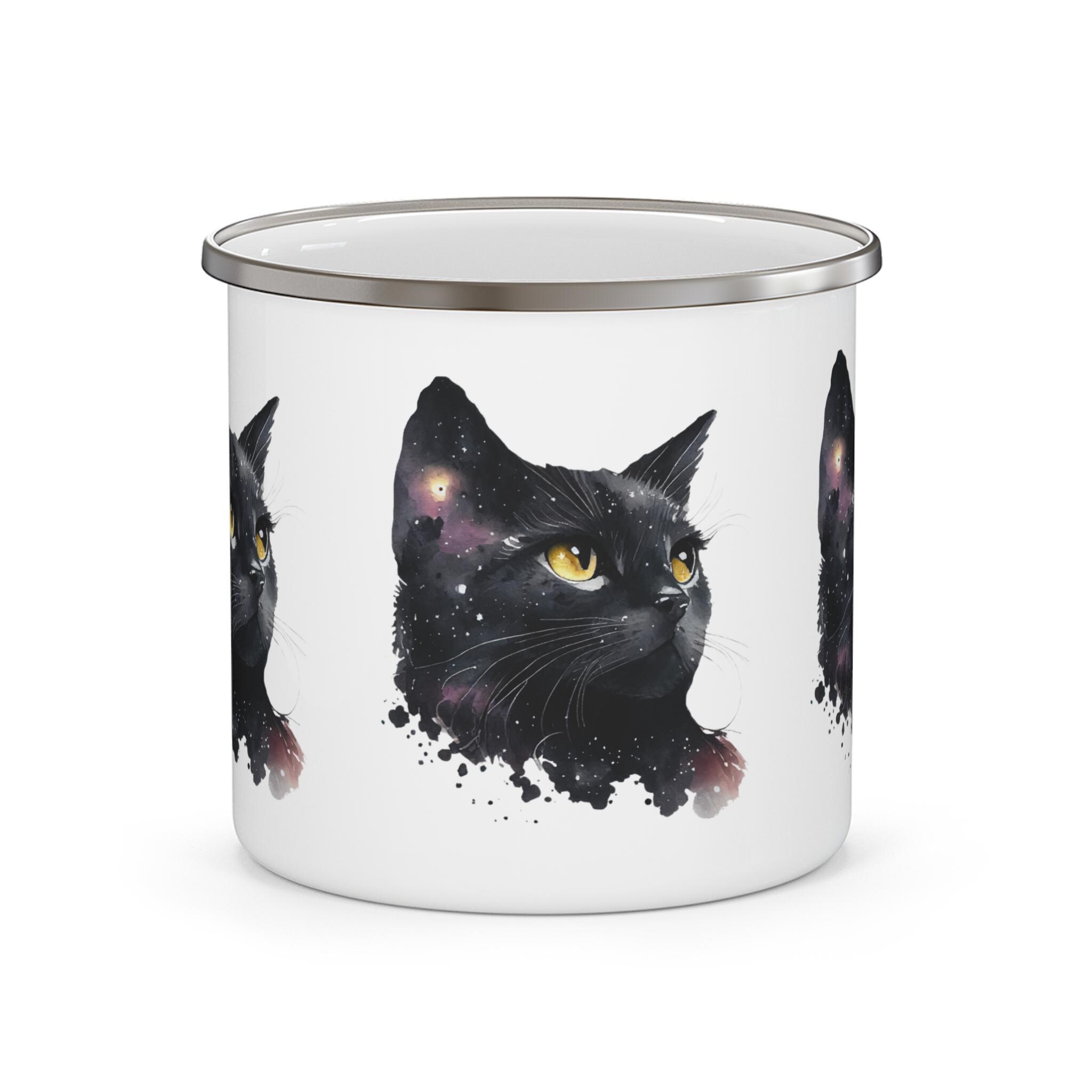 Galactic Cat Enamel Mug - Cute Cat Lover Gift, Camping Essential, Astronomy Coffee Mug, Adventure Accessories, Unique Home Decor