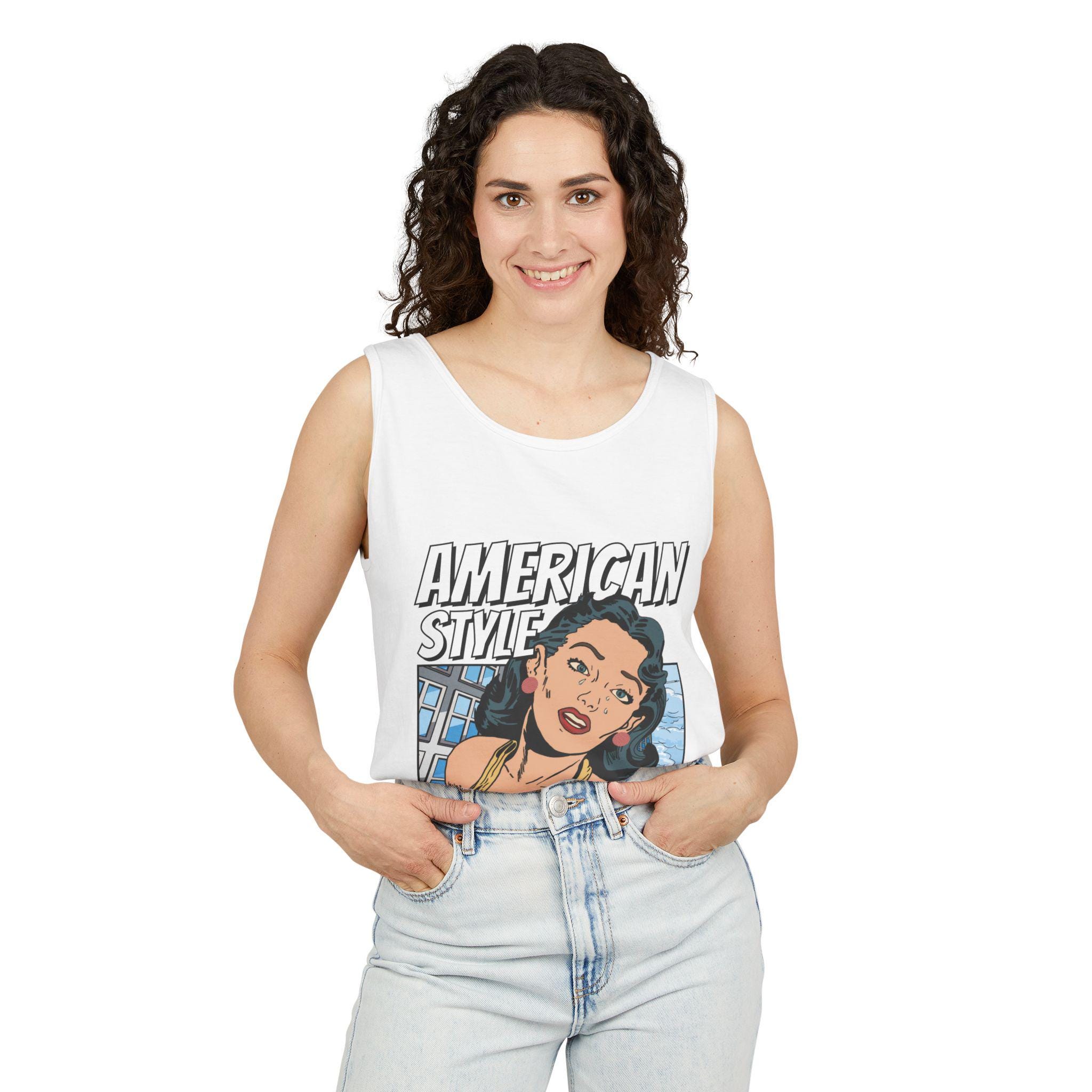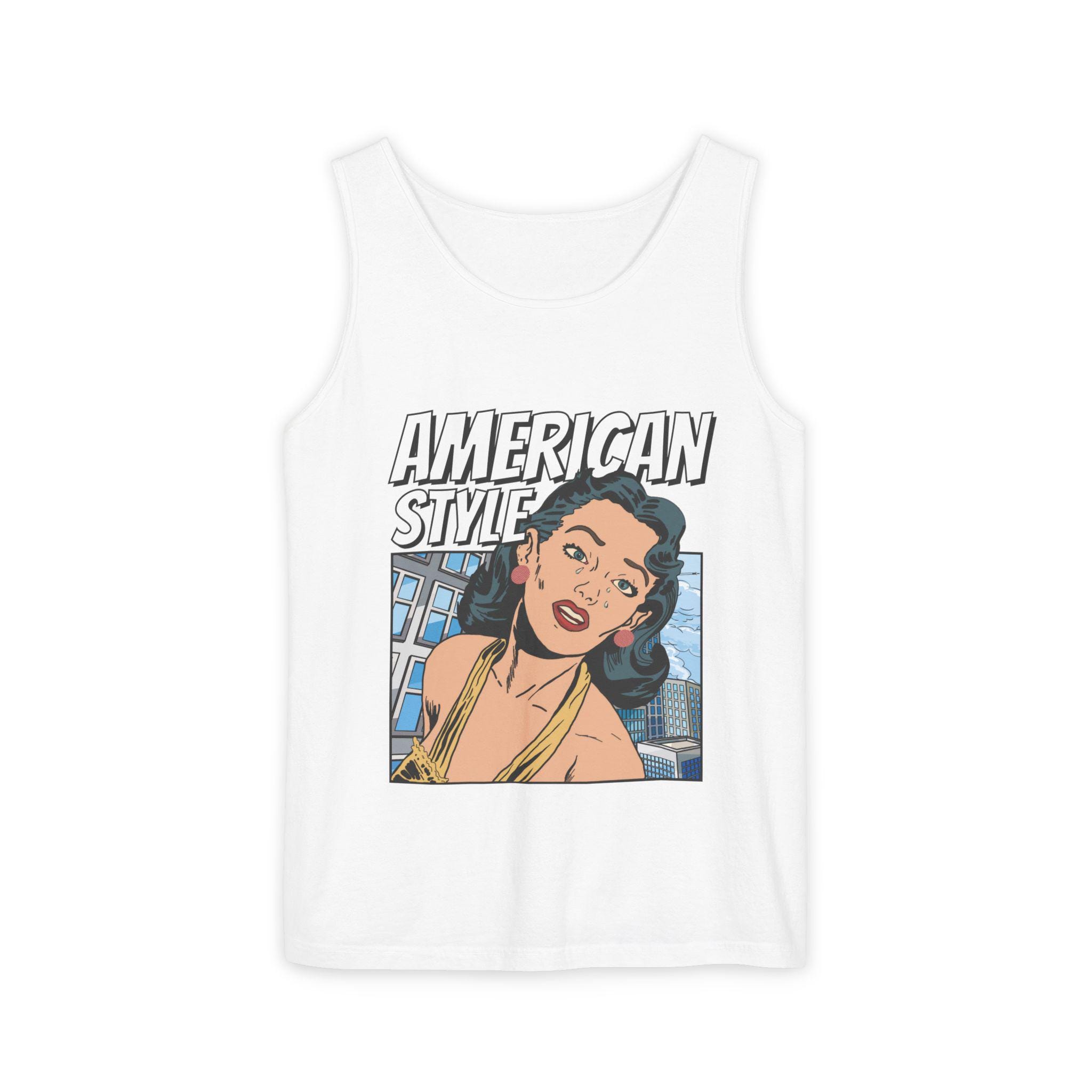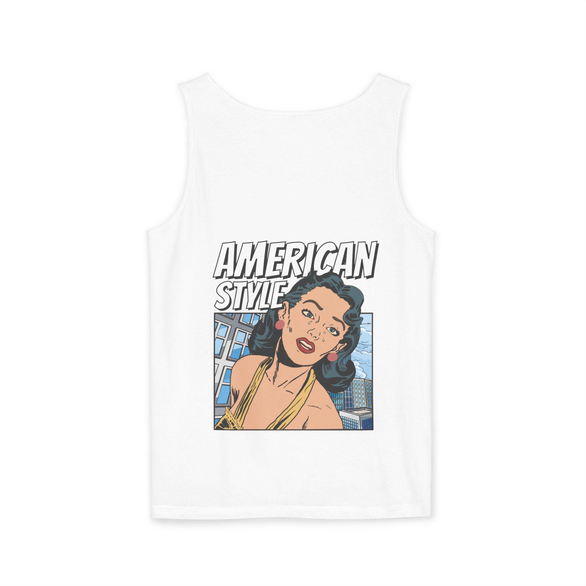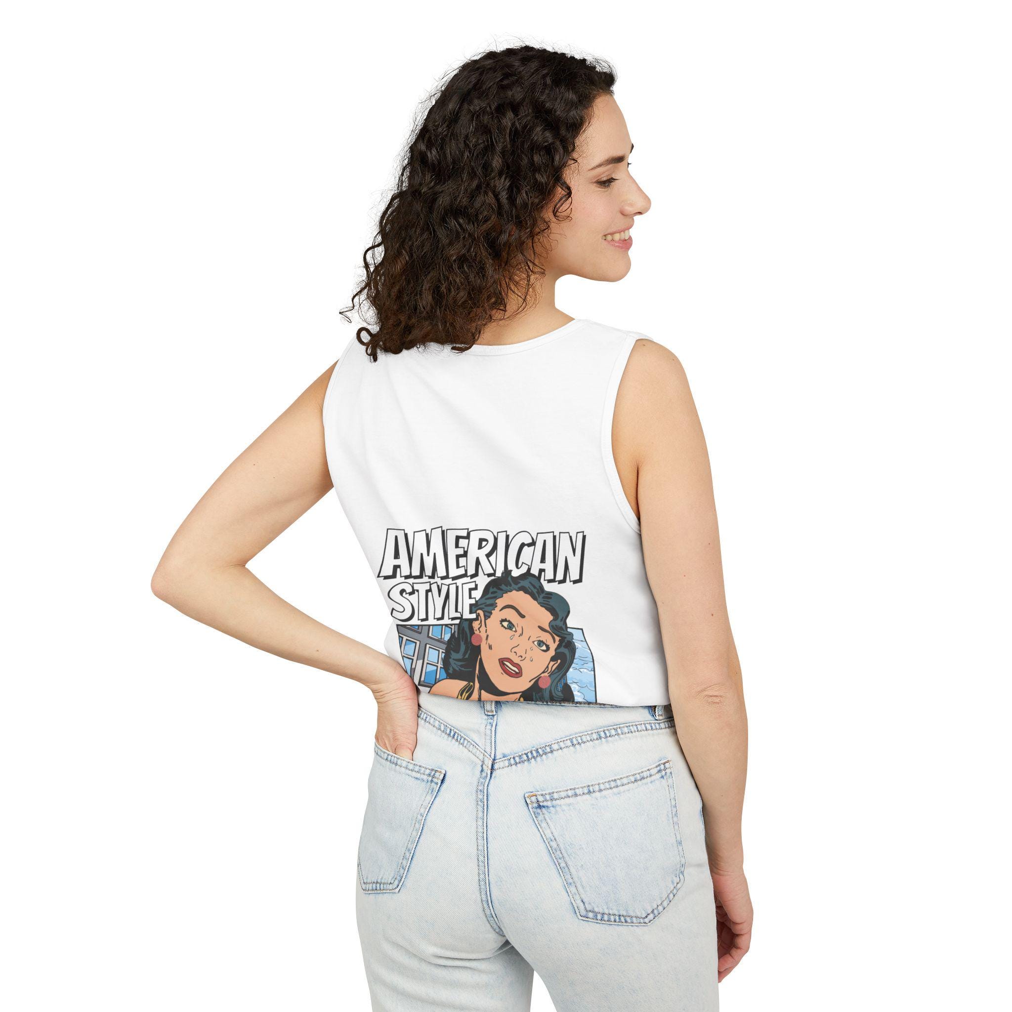 Vintage Pop Art Tank Top - American Style, Women Summer Shirt, Beachwear, Gift for Her, Casual Top