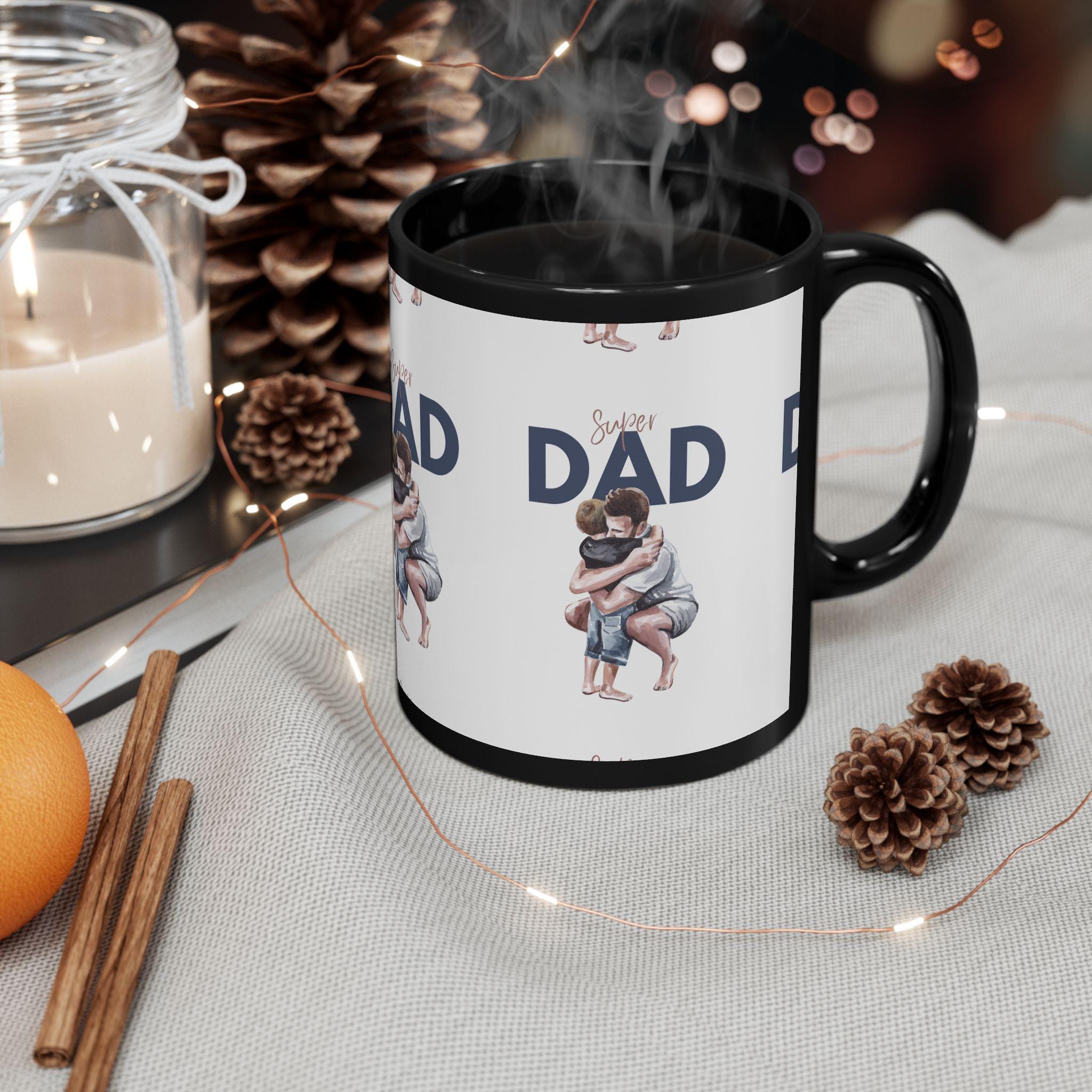 This Black Mug is the perfect companion for cozy mornings and thoughtful gift-giving. Crafted from glossy ceramic, it radiates elegance and modern style. The vibrant print captures heartfelt moments, making it an ideal choice for any dad celebrating his special day. Whether it’s Father’s Day, a birthday, or simply a gesture of appreciation, this mug helps create warm memories during tea or coffee breaks. It's perfect for adults who cherish quality and love personalized touches in their daily life. With its sleek design, it effortlessly blends into any kitchen decor while providing a daily reminder of love and connection.