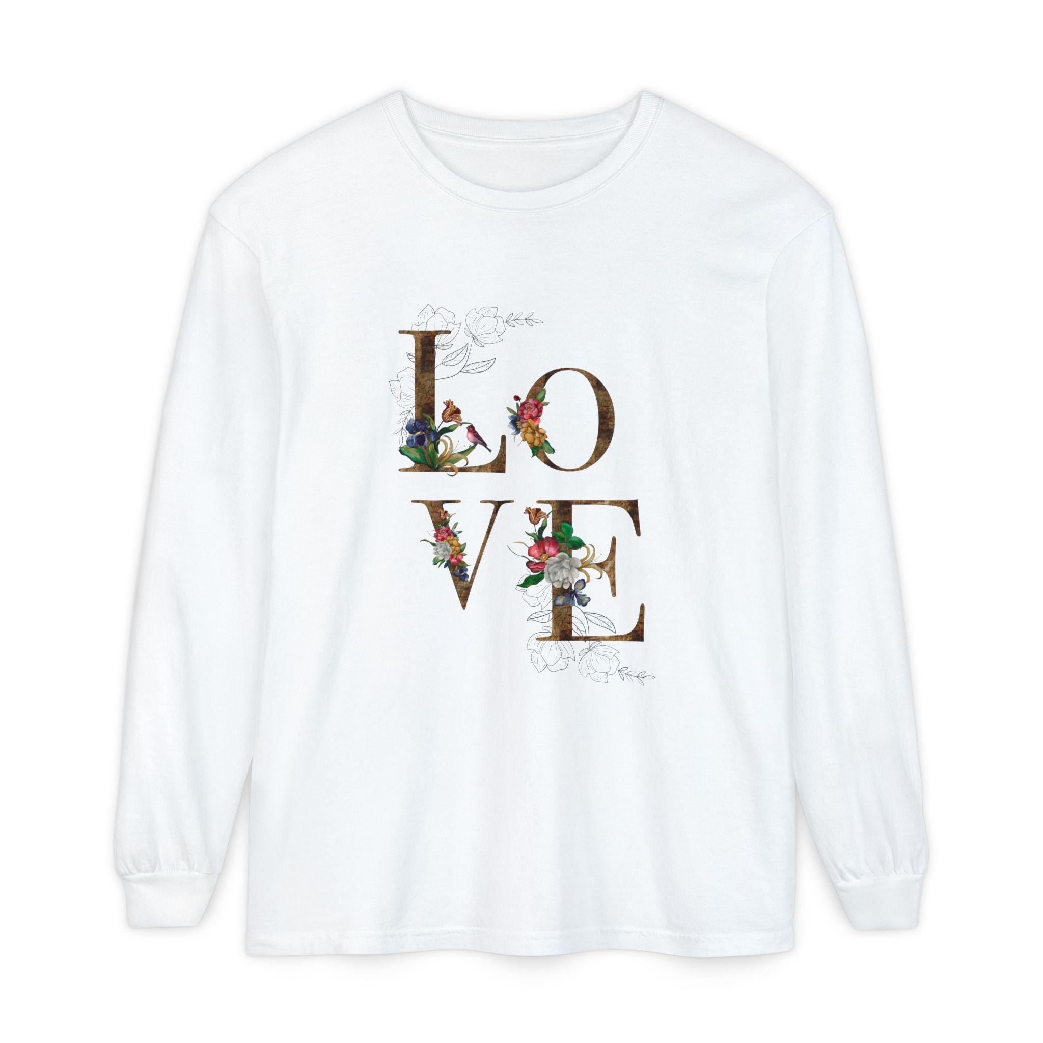 This Love Women Long Sleeve T-Shirt exudes a cozy and romantic vibe, perfect for casual outings or lounging at home. It makes a great gift for Valentine's Day, anniversaries, and birthdays. Target audience includes women looking for comfortable and stylish apparel.