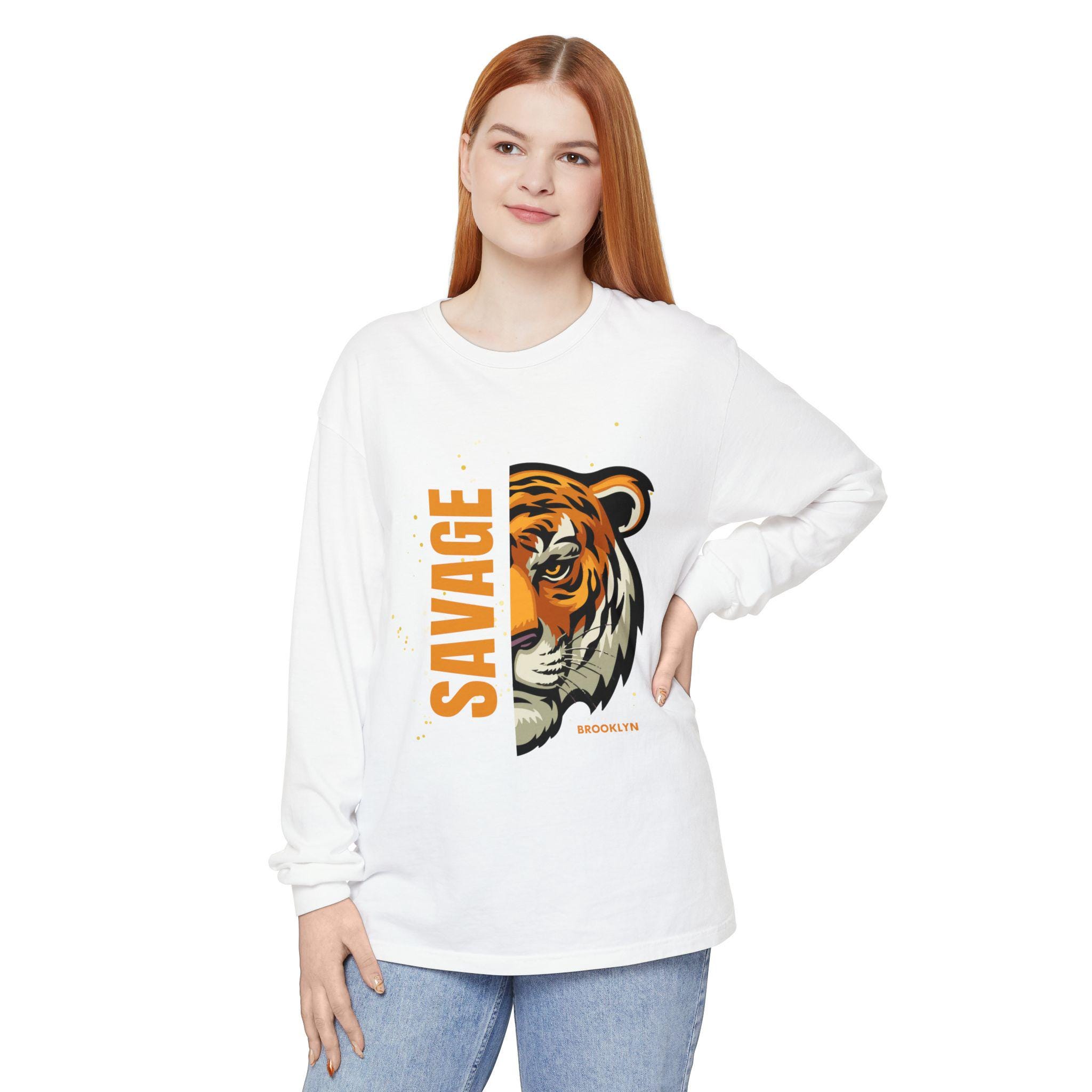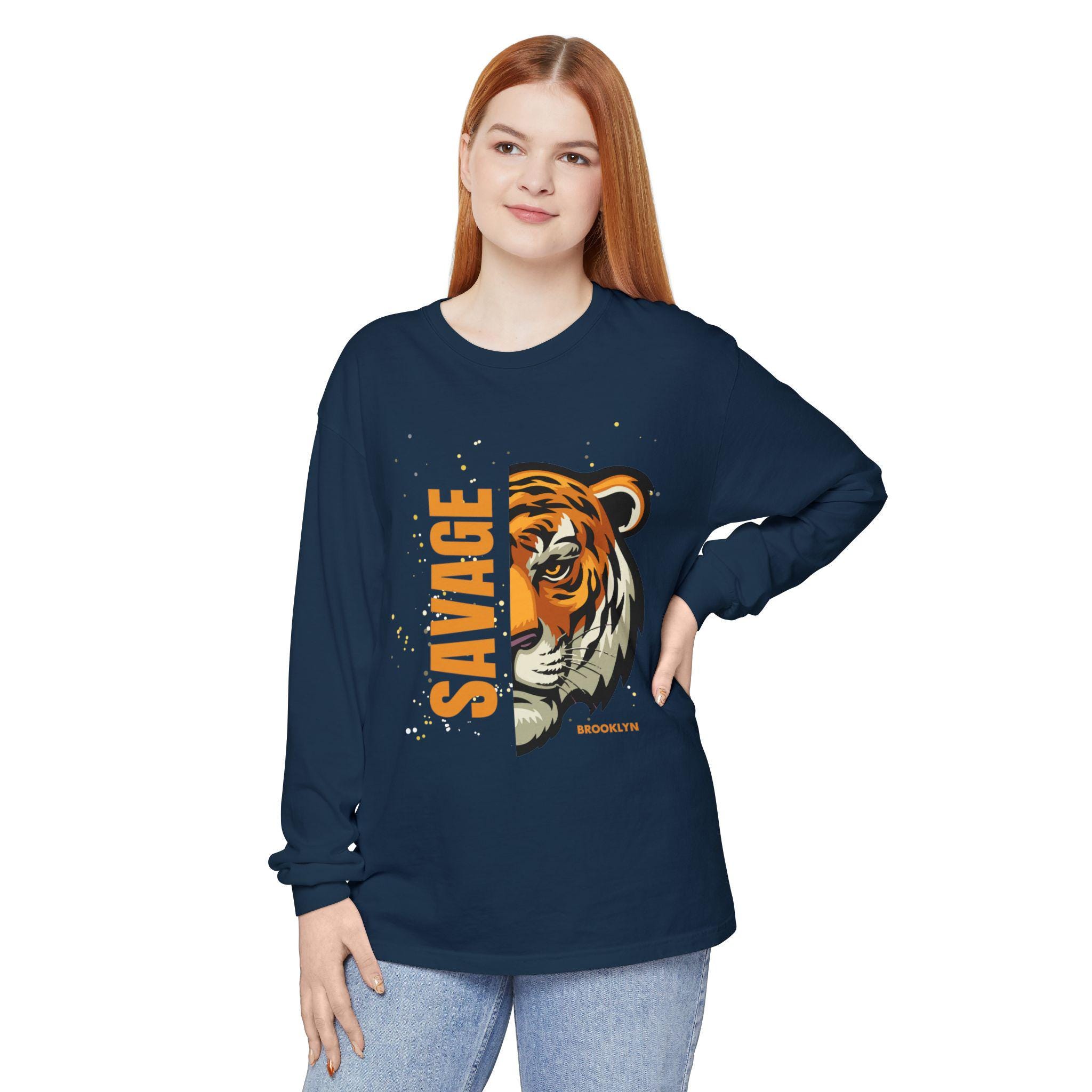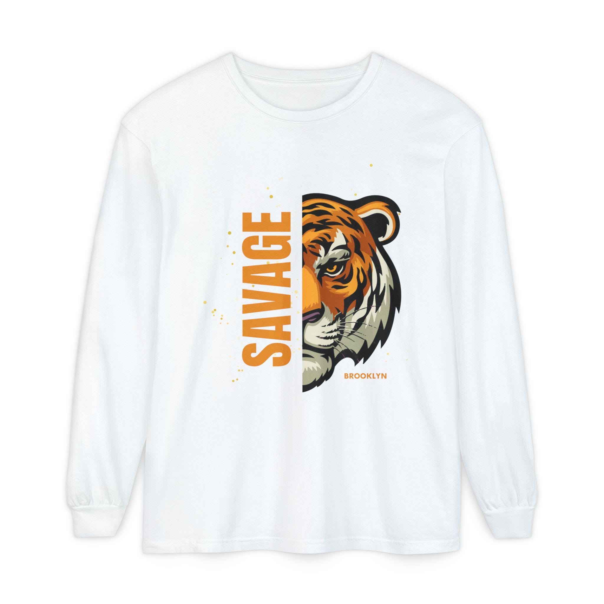 Savage Tiger Long Sleeve T-Shirt, Women Graphic Tee, Wildlife Lover Apparel, Statement Shirt, Birthday Gift, Casual Wear