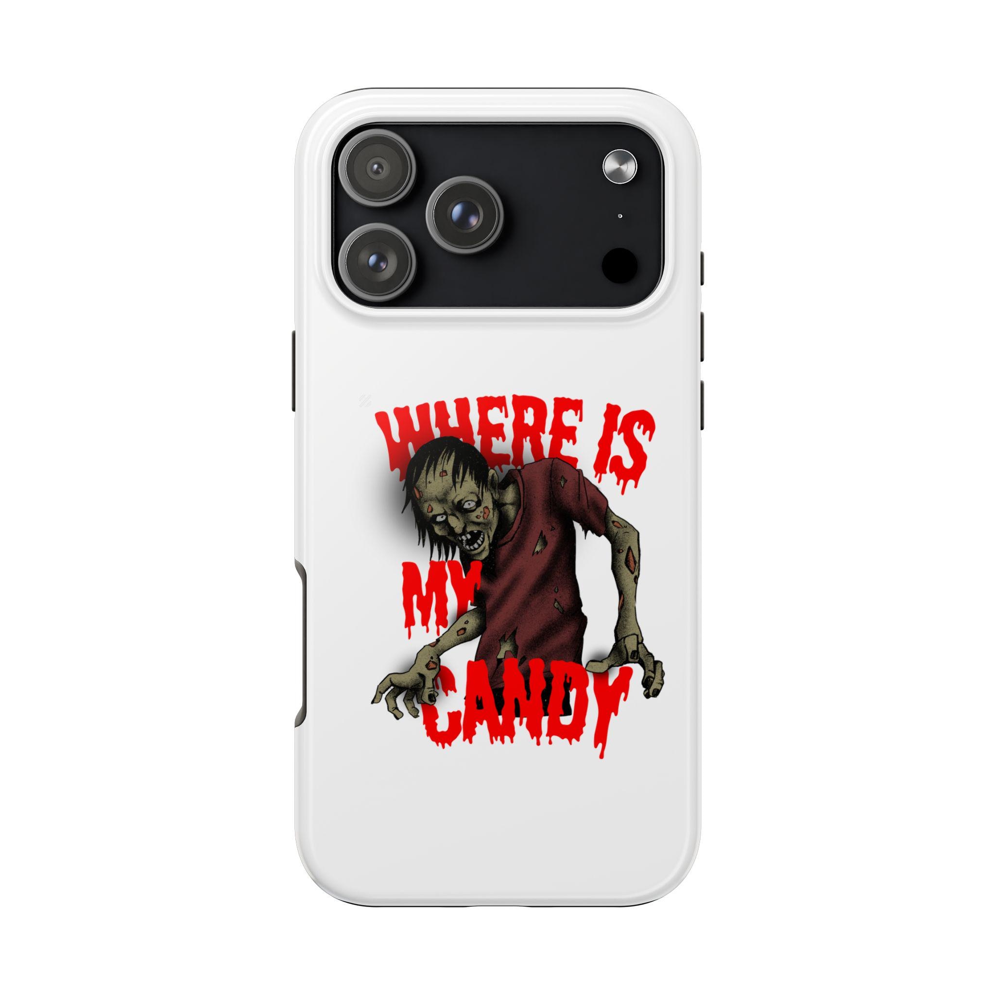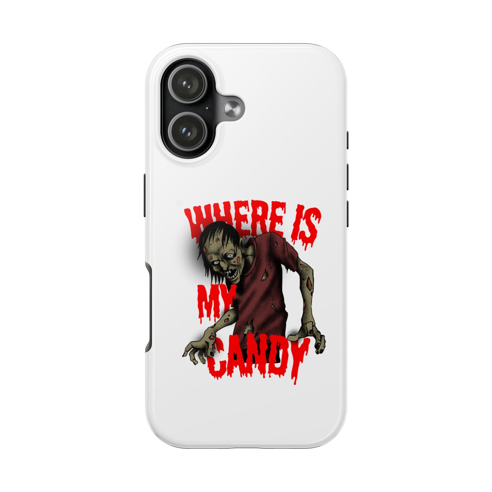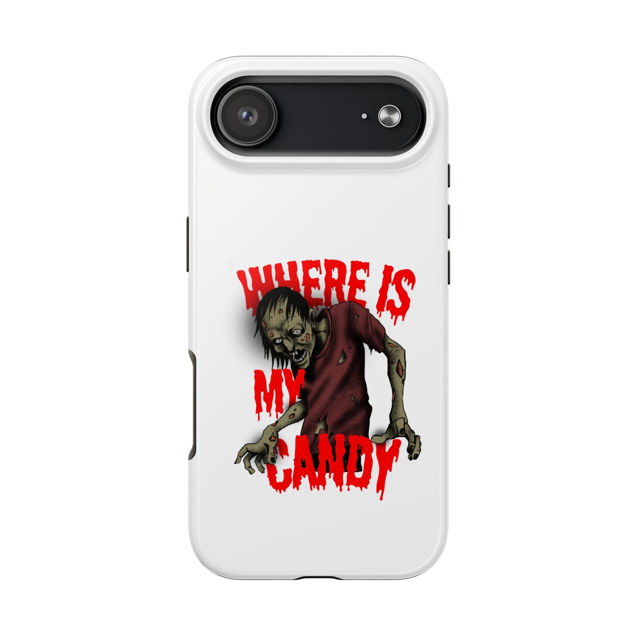 Protect your phone in style with this tough phone case, designed for those who love a bold, edgy look. Perfect for Halloween enthusiasts or anyone who enjoys a touch of fun and spookiness in their daily accessories. The playful 'Where is my candy?' design brings a quirky vibe to your device, making it a great conversation starter. This phone case is not only protective but also expresses your unique personality. Ideal for young adults and teens looking to make a statement, it is a perfect gifting option for occasions like Halloween, birthdays, or just because. Keep your phone safe while showcasing your love for fun and fright!